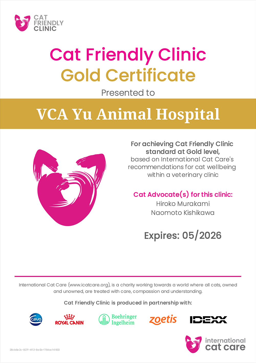 ユウ動物病院は、国際規格である「キャット・フレンドリー・クリニック(CFC)」の最高水準【ゴールドレベル】の認定を受けています。静岡県内では4病院・東部地区では唯一の病院です。