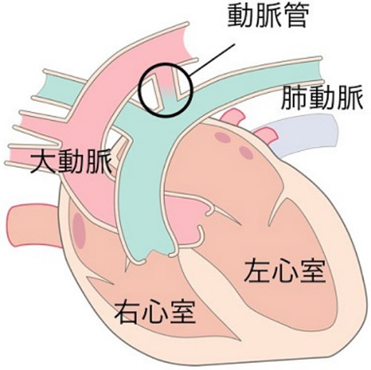胎児期に存在する血管(動脈管)が、出生後も閉じずに残ってしまう病気です。通常、生後数日で自然に閉鎖しますが、閉じないままだと大動脈から肺動脈へ血液が逆流し、肺や心臓に大きな負担がかかります。犬で比較的発生頻度が高いとされています。
