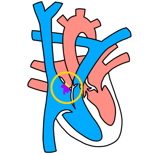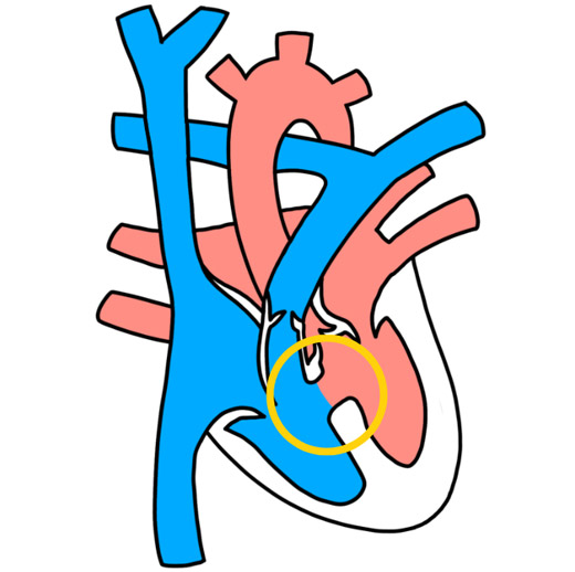 心臓の右心室と左心室を隔てる壁(心室中隔)に穴が開いている病気です。穴の大きさによっては、血液の流れに異常が生じ、心臓に負担がかかります。
