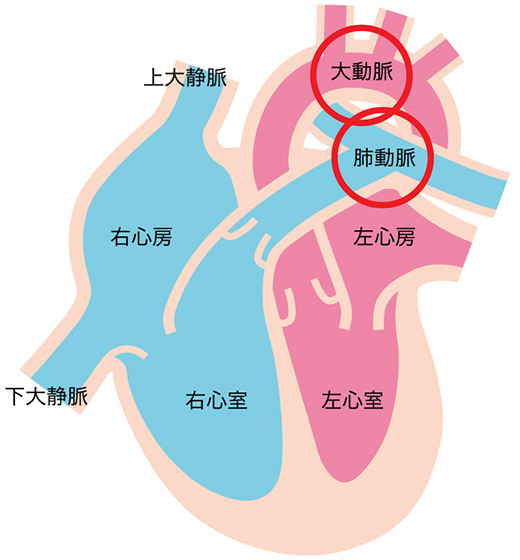 心臓から肺へ血液を送る肺動脈の出口(肺動脈弁)が狭くなっている病気です。血液がスムーズに流れず、右心室に大きな負担がかかります。重度の場合、突然死のリスクもあります。