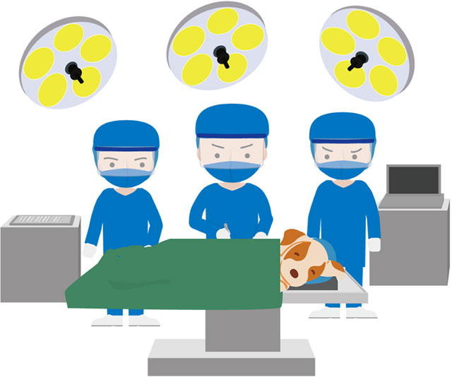 手術の前には凝固系検査、腹部X線、全身状態の評価を必ず行い、安全性を確認します。