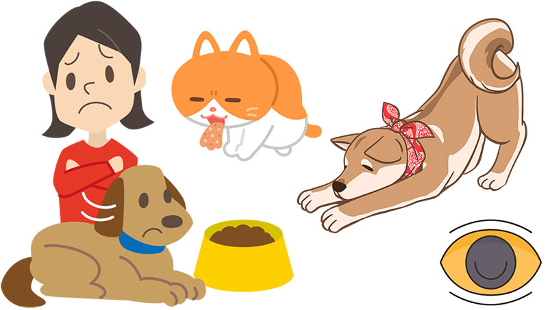 - お腹を痛がる様子(腹部痛・触られるのを嫌がる)