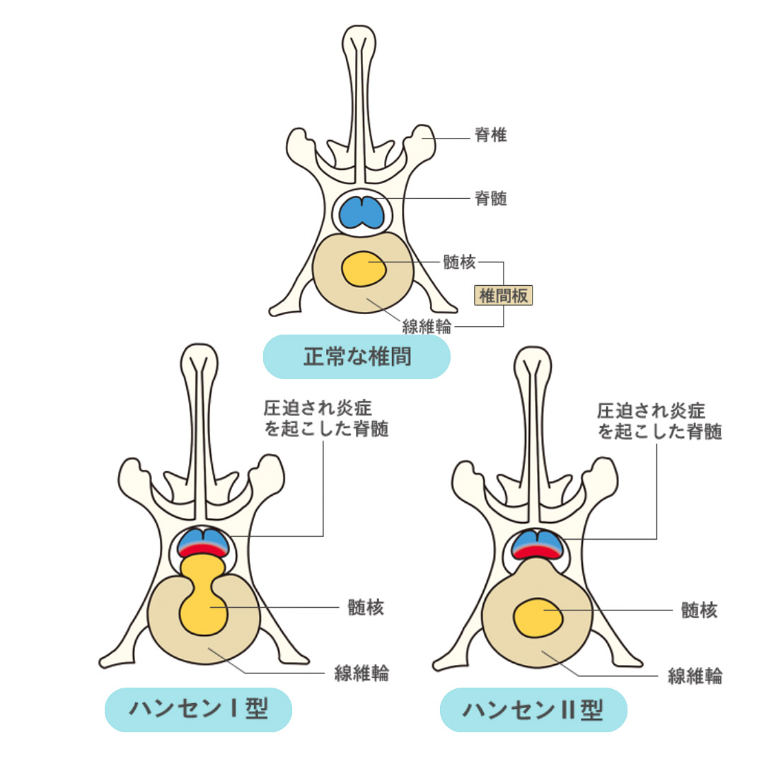椎間板ヘルニアには、大きく分けて二つのタイプがあります。愛犬に起こっている痛みが、どちらのタイプによるものなのかを知ることは、治療方針を決定する上で非常に重要です。
