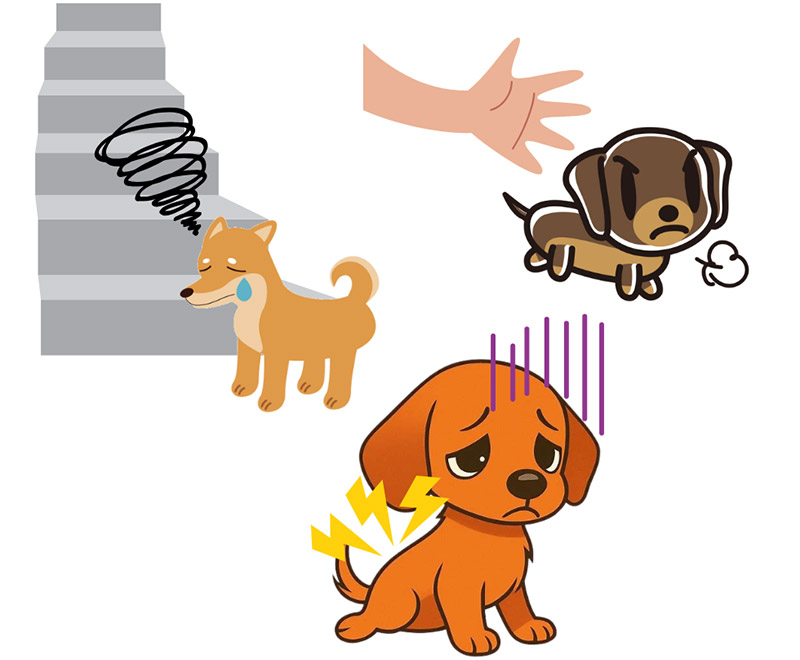 この「圧迫」の度合いによって、愛犬は様々な神経症状に苦しむことになります。まるで目に見えない針で刺されるような激痛、あるいは後ろ足が麻痺して動かせない絶望感…。わたしたちには想像もつかないほどの苦しみが、愛犬の身に起こっているかもしれません。