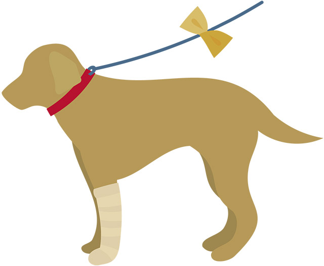 肥満気味の大型犬や高齢犬、活発な犬の怪我で最も注意したいのは前十字靭帯断裂症です。強い衝撃や肥満による間接への負荷でひざにあるじん帯が切れてしまうのですが、一見すると少し歩きづらそうにしているだけで、しばらくすると普通に走ったりするので注意が必要です。