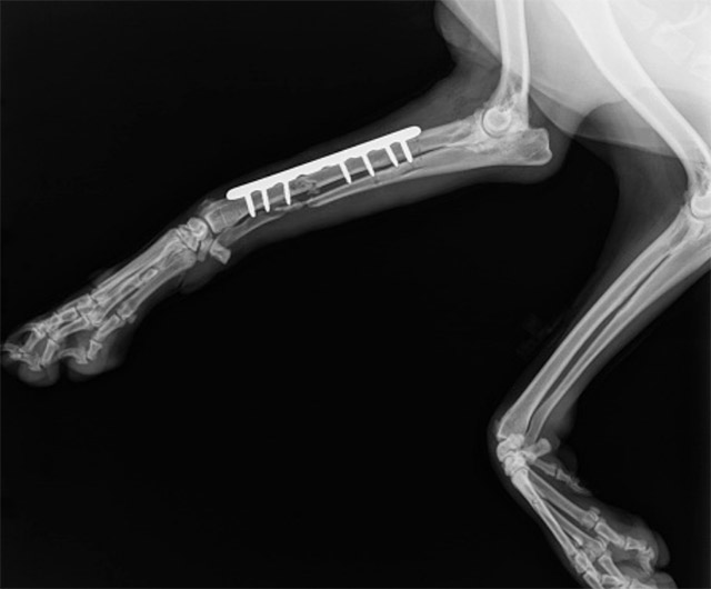 骨折タイプ・動物の大きさなどにより、様々なピン・プレート・スクリューなどを組み合わせて手術を行います。