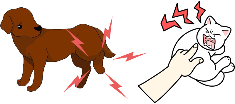 - 抱っこしようとすると「キャン!」と鳴く、体を触らせない。