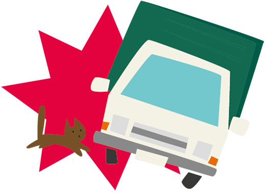 外に出てしまったときや、散歩中に車やバイクと接触したケース。