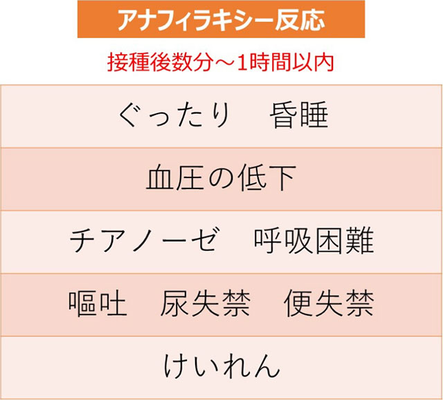 - ワクチン接種後、稀にアレルギー反応などの副反応が出ることがあります。接種後30分程度は病院で様子を見ることが推奨されます。