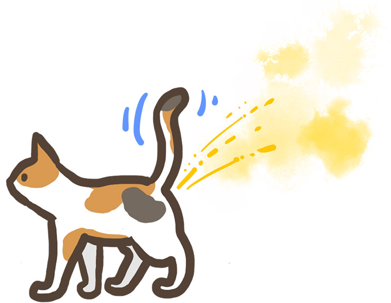 - スプレー行動(猫ちゃんに多い、壁などに吹き付ける強い尿の匂い)