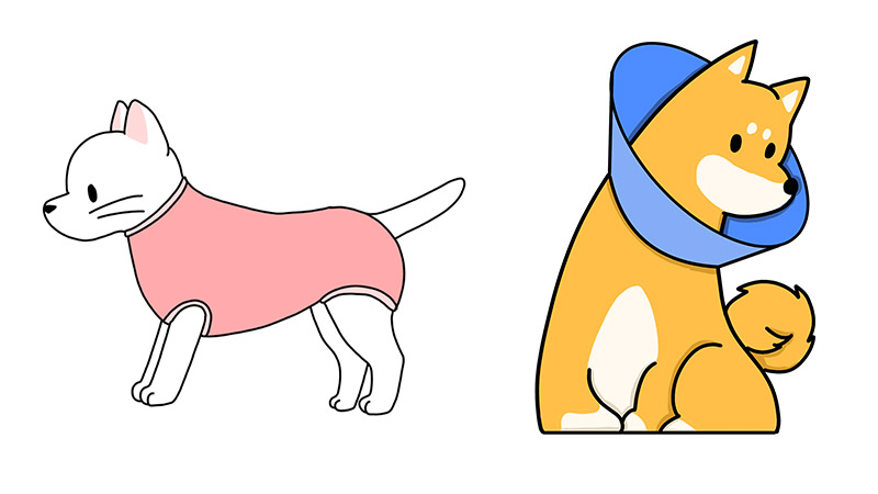 術後、傷口を舐めてしまわないように、エリザベスカラーや術後服の着用が必要になることがあります。これは傷の感染を防ぎ、スムーズな回復を促すために非常に重要です。